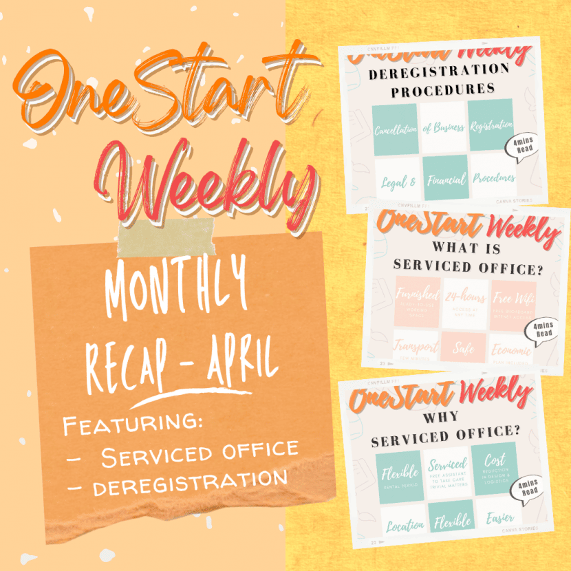 In April we covered 2 big topics: (1) Serviced office, (2) Deregistration & Trade mark. For those who will need a quick recap on the main points to get you prepared for the year end, this Monthly Recap is your finest aid.