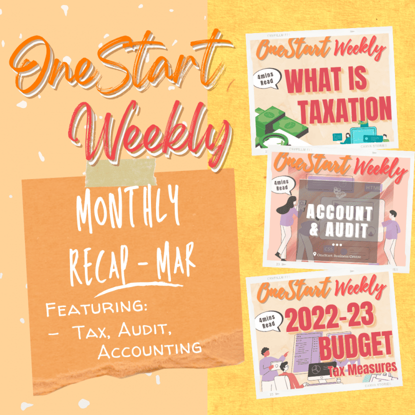 In March we covered 2 big topics: (1) Taxation, (2) Account & Audit. For those who will need a quick recap on the main points to get you prepared for the year end, this Monthly Recap is your finest aid.