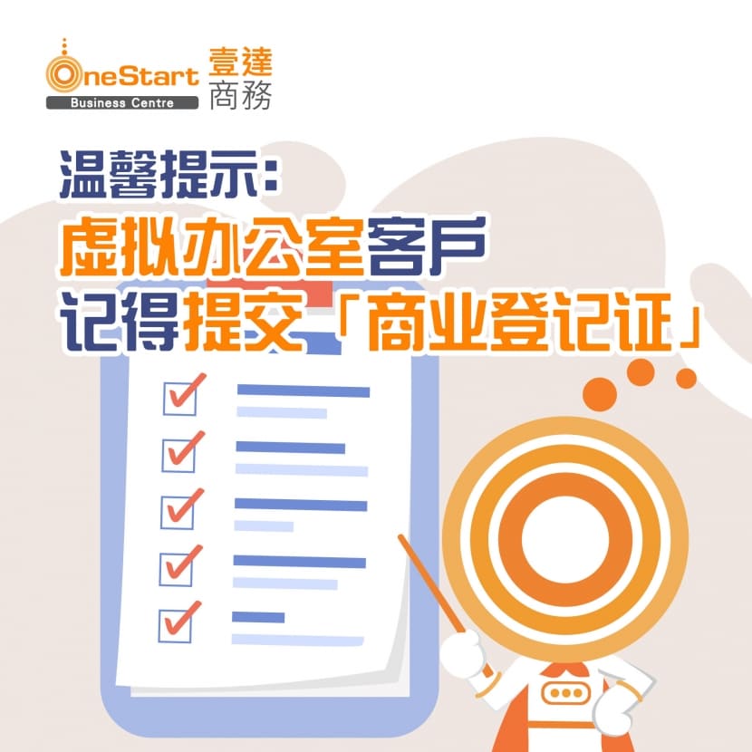 温馨提示:虚拟办公室客户记得提交「商业登记证」