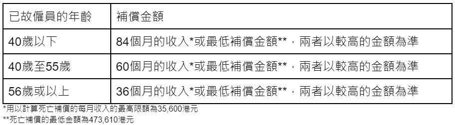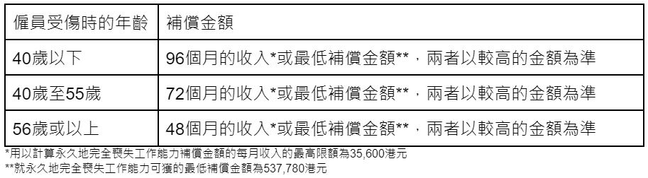 ii) 在执行关于工作的职务时遭遇意外而引致对身体的损伤,而补偿金额则会受雇员的年龄和损伤程度影响。